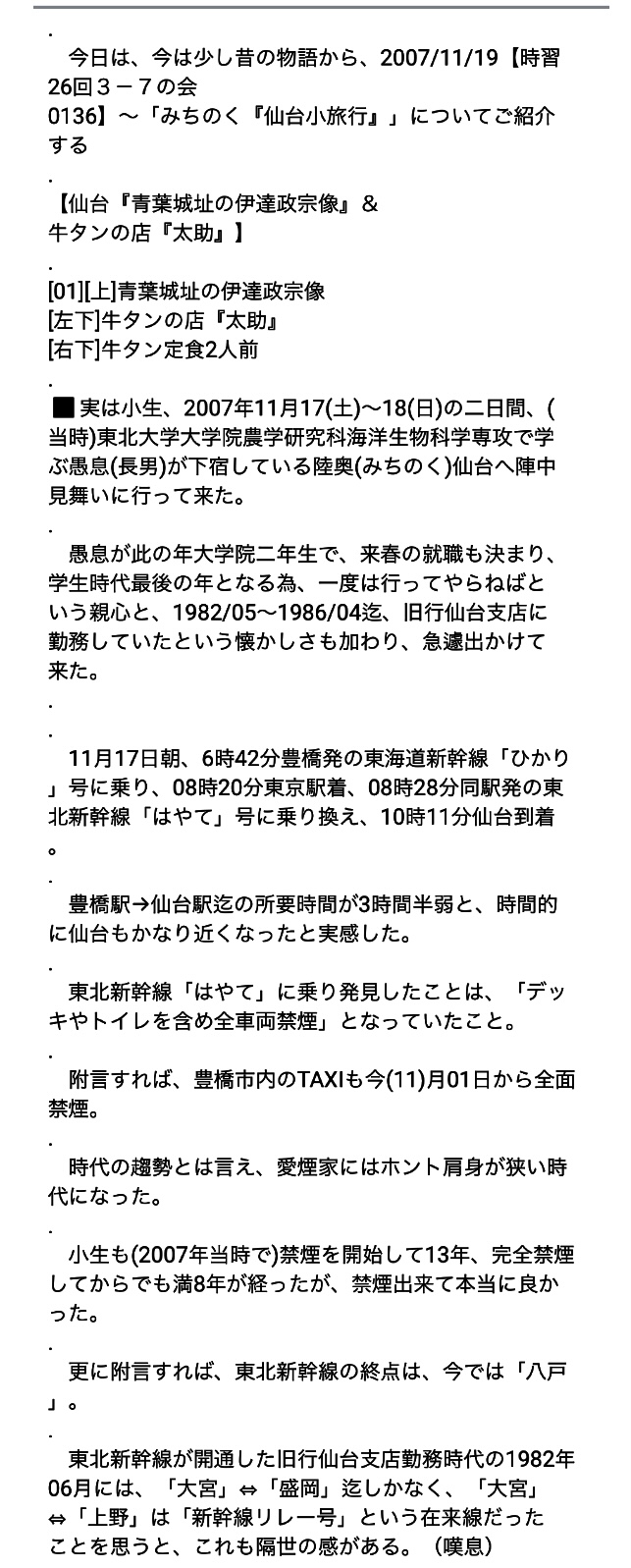 ■今日は、今は少し昔の物語から、2007/11/19【時習26回3-7の会 0136】~「みちのく『仙台小旅行』」についてご紹介する